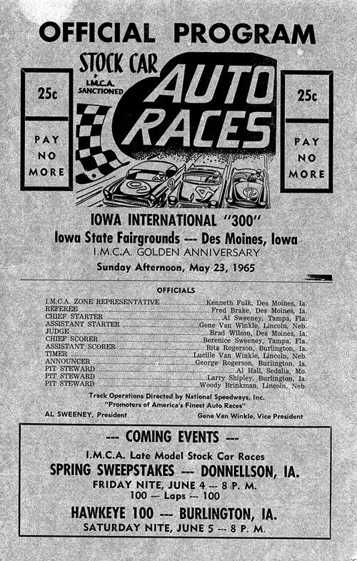 In 1965, Ford driver Dick Hutcherson (also of Keokuk) had moved to NASCAR and Ernie Derr was driving a Dodge with Stott still in his Plymouth. The two Chrysler product drivers simply dominated the series winning 37 of 38 feature races in a season that would be hard to top. Or could the Chrysler cars score a clean sweep in 1966!
