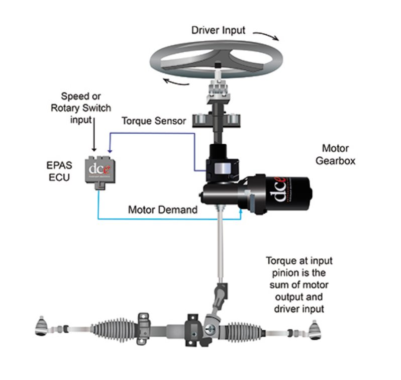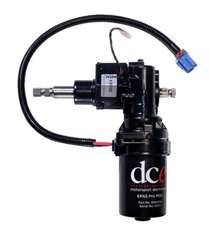 The Microsteer is comprised of the motor gearbox unit (MGU), an electronic control unit (ECU), a tuning box, the wiring harness, and input/output shafts. To fit the MGU, the factory steering column needs to be modified to locate the MGU in series between the steering wheel and the steering box (or rack and pinion). The MGU can be mounted in multiple positions to fit as necessary on the vehicle.