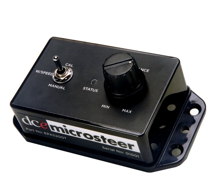 The tuning box can be operator controlled, and it provides the amount of assist by dialing in a rotary potentiometer. If desired, rather than a manual input, the ECU can monitor a speed sensitive system that provides power assist based upon a factory vehicle speed sensor (VSS). If the vehicle is not equipped with a VSS, an optional (not part of the EPAS kit) Microsteer speed sensor, (part no. FR40200S) can be installed on the prop shaft or a disc brake assembly.
