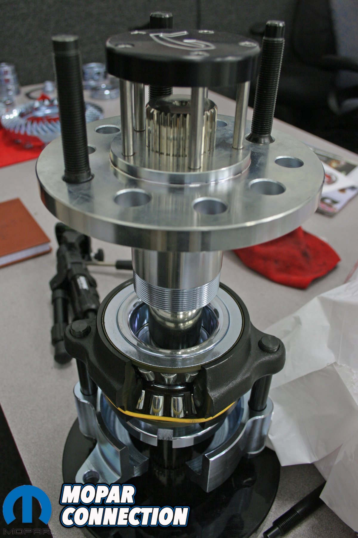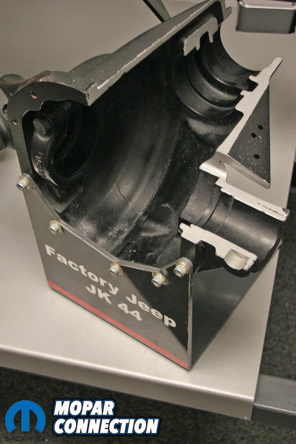 Above left: Displays are a major resource for potential customers to check out Currie’s products up close. Above right: The RockJock 44 axle center section.