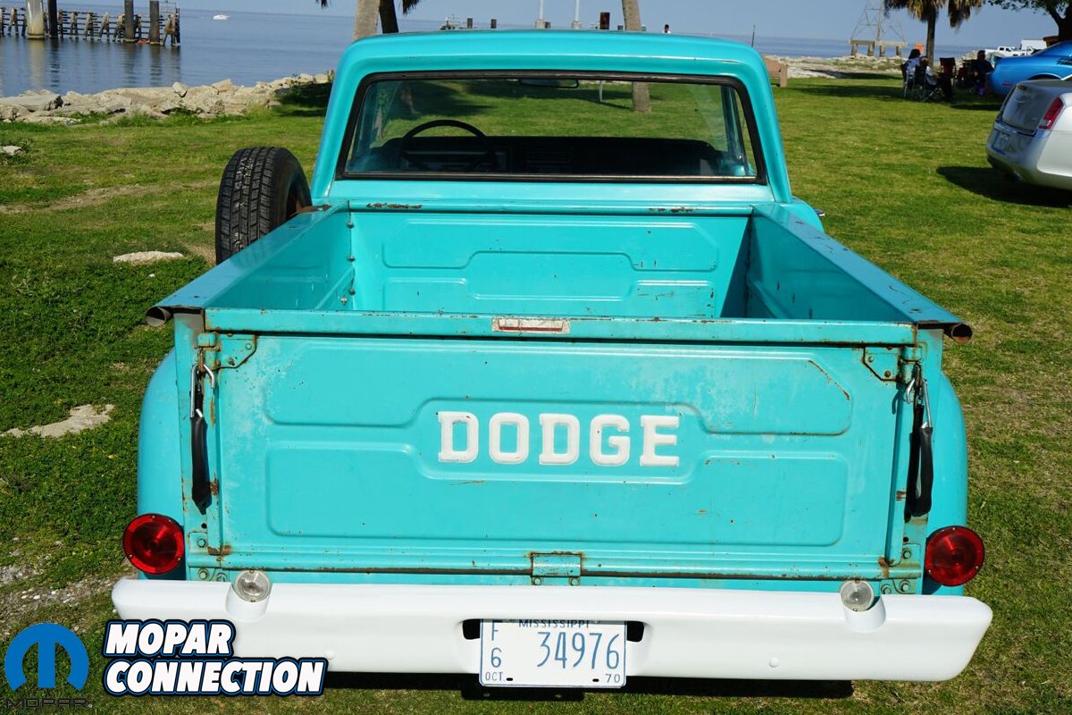 Unfortunately, Gene passed away in April 2013. After his passing, Chris decided that he wanted the truck. Being as his mom and older brother had no interest in it, they decided to load it up and haul it to Chris’ house to surprise him on his 26th birthday. Chris shares, “I was happy to have it and I drove it around a lot in the original condition. Not long after, I met a guy on Facebook by the name of Robin McQueen [you may recognize the name – we featured his FC7 1971 Charger R/T last year – Ed.] who was in the process of doing a Crown Victoria front-end swap to his 1969 D100. I took interest in this process and thought if my dad was still with me, he’d want to make a hot rod out of the truck.”
