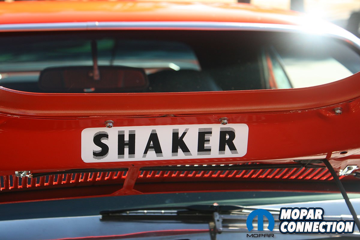 “During the restoration, I took the liberty of adding a few options that the car didn’t have from the factory, such as the R/T side stripes, front and rear spoilers, and chrome exterior mirrors. As the car was nearing completion, my wife decided she really wanted a Shaker hood on the car along with rear window louvers,” Mark said.