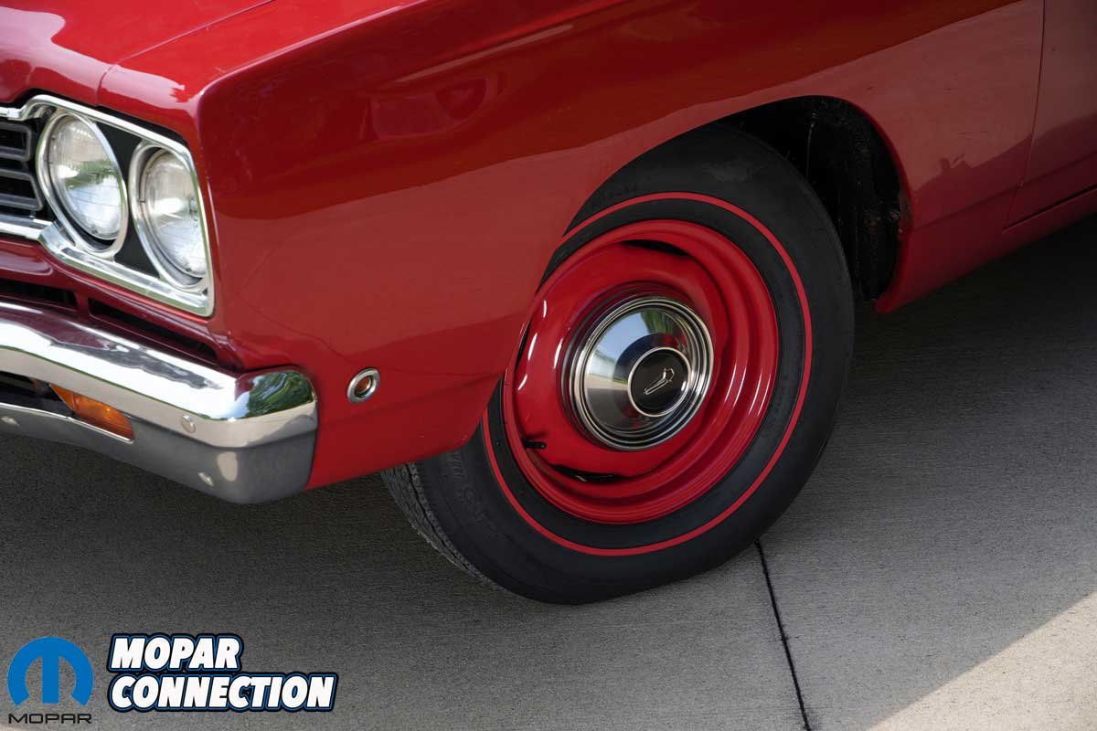Above: Our project car, Rara Hemious Birdicus, rides on a beautiful set of Firestone bias-ply appearing red line radials. The tires have all the benefits of a radial, but the classic look of a period-correct bias-ply tire.