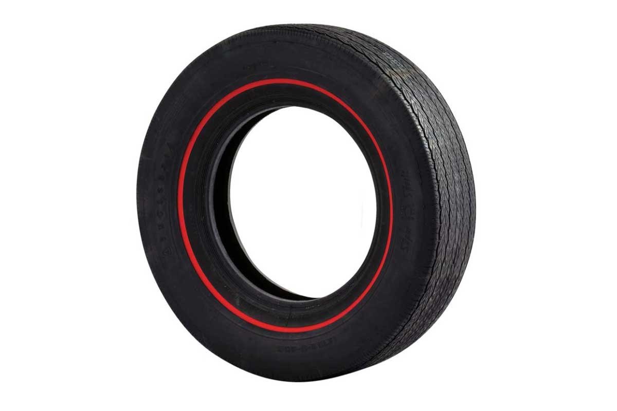 Above: Classic Industries offers several Firestone tire options with a pinstripe whitewall (left), a raised white letter Wide Oval (center), and a red-line style tire (right). Most of the tires are bias-ply. However, some have a bias-ply appearance while being radial construction.