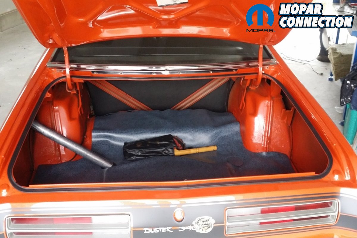To repair the damage, Glenn found a rust free southern hood, fender, door, valance panel and an NOS Sharkstooth grill. Once he had all of that together, the Duster was sent off to the body shop. While it was there, Glenn found and purchased a rust free trunk section with frame rails and had the body shop fix his amateur body work he had done in the ‘80s. The front floors were also replaced since they had been patched during Glenn’s home done restoration too.