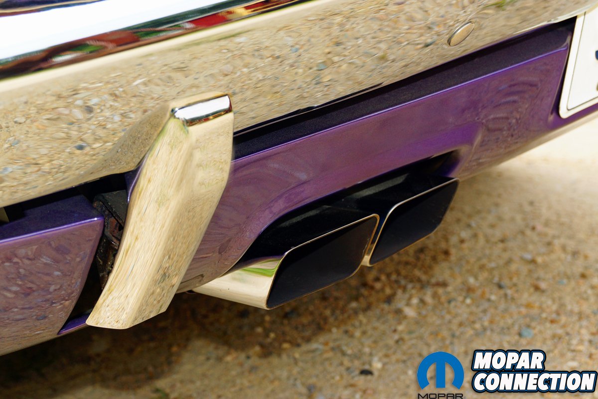 While the trunk floor had only a few pinholes, it still required a replacement. However, the frame rail extensions were in good shape and were able to be reused. The area below the windshield wiper motor had rust due to a blocked drain hole that allowed debris to accumulate. To repair the trunk and the firewall, Bret found a donor car to supply the necessary sheet metal. After plenty of straightening and sanding, the Challenger was painted in the factory FC7 Plum Crazy hue.
