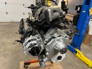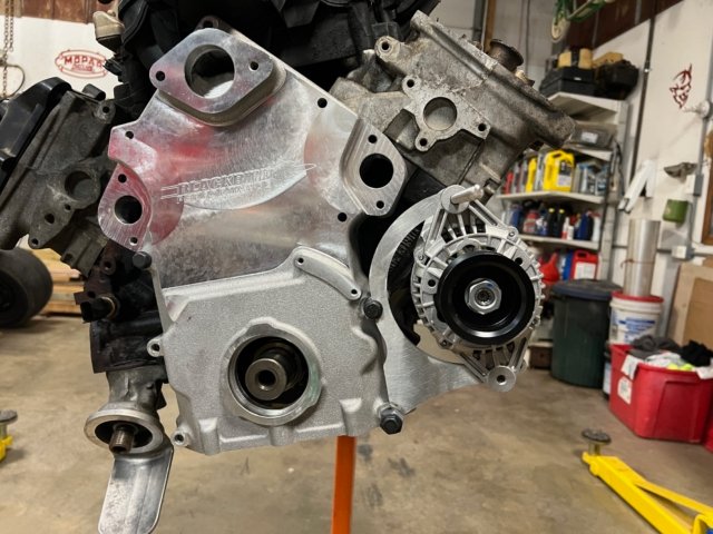 After that, other accessories are on the prospective list such as a high passenger side alternator bracket that will work with a mechanical water pump. The idea would be to have something that lays out along the lines of a traditional Mopar muscle car engine with a single (serpentine) belt going from crankshaft to water pump to alternator. This package would use an off-the-shelf water pump along with any old vintage-style Chrysler alternator, new or otherwise.