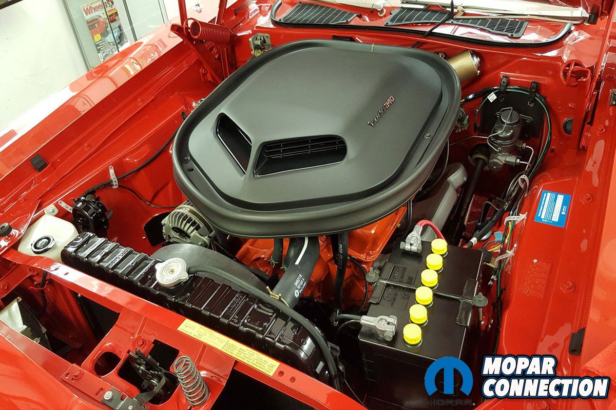 “I probably asked the seller around a million questions being as I was in Europe and the car was in the United States. The seller told me that the car was built in late September 1970 and was sold new in California. From the factory, it was painted FE5 Rallye Red with a black vinyl top, black billboard stripes and a black bucket seat interior. Under the hood was the 340-4bbl backed by a 727 Torqueflite automatic and an 8 ¾ rear differential.