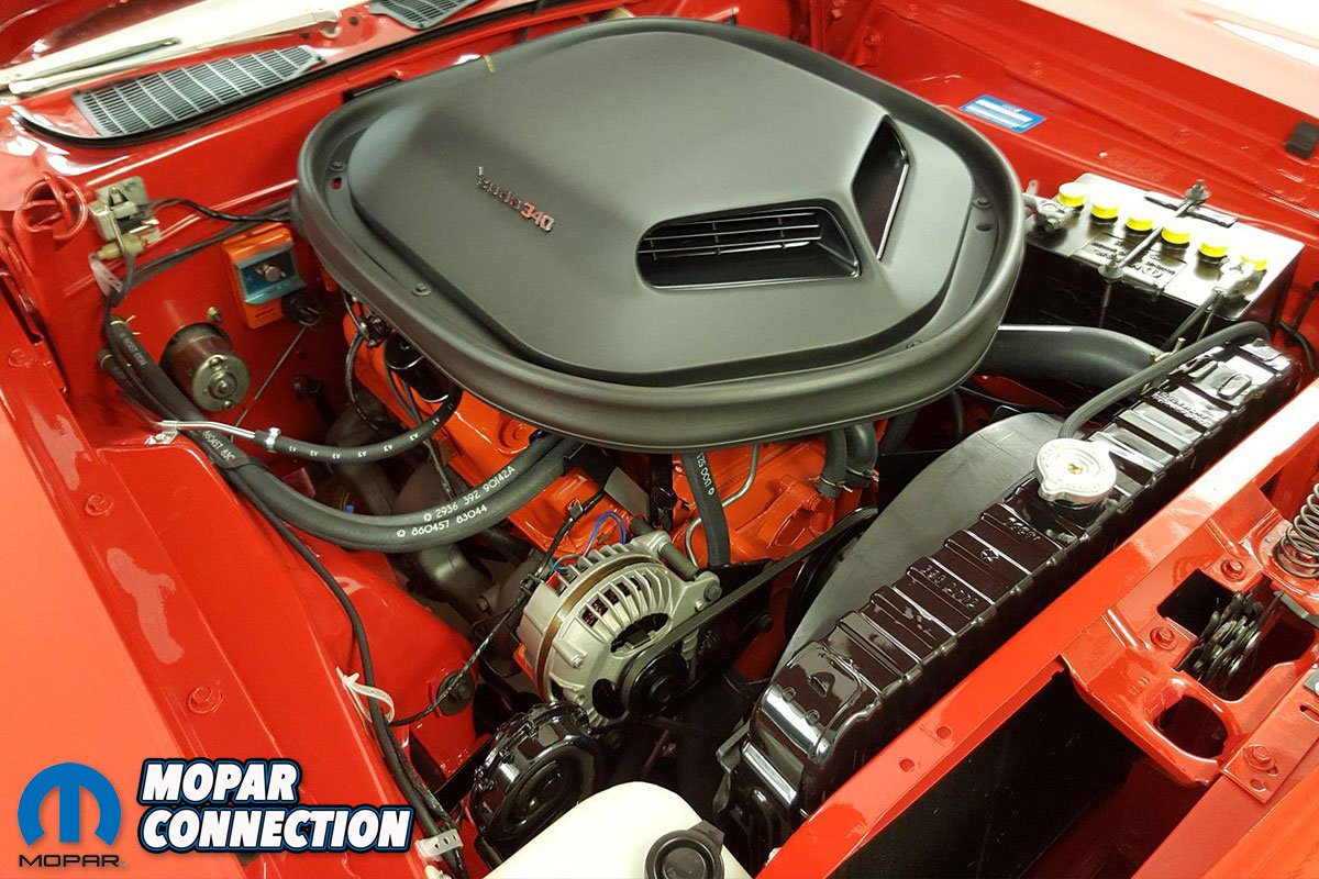 With a scheduled production date of April Fool’s Day 1970, the AAR rolled off the assembly line painted FE5 Rallye Red with a black vinyl top and a black bucket seat interior. For options, the A833 Pistol Grip 4-Speed manual transmission was chosen to back the 340 Six Barrel engine along with the A22 Elastomeric Bumper package, power brakes, center console, dual painted racing mirrors and the Music Master AM radio.