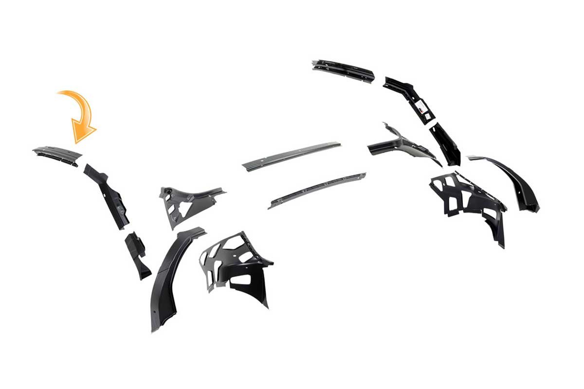 AMD does not stop at outer roof rails. It offers a comprehensive range of additional roof structure components, all available online. From upper and lower center braces to upper and lower sail panels to rear window braces and from upper and lower outer sail panel braces to B-pillar vertical posts, AMD has you covered.