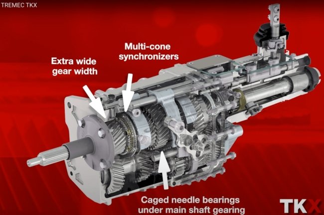 Tremec transmissions are built with large gears that are sometimes straight-cut or semi-helical. Those features make them incredibly strong, but also more susceptible to torsional disturbance which is the irregular vibration produced by an engine’s combustion events. Basically, torsional disturbance plus clearance between gears causes an audible chatter.