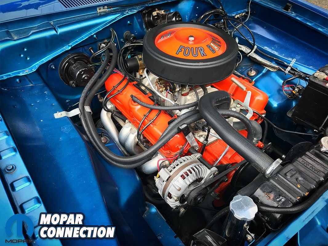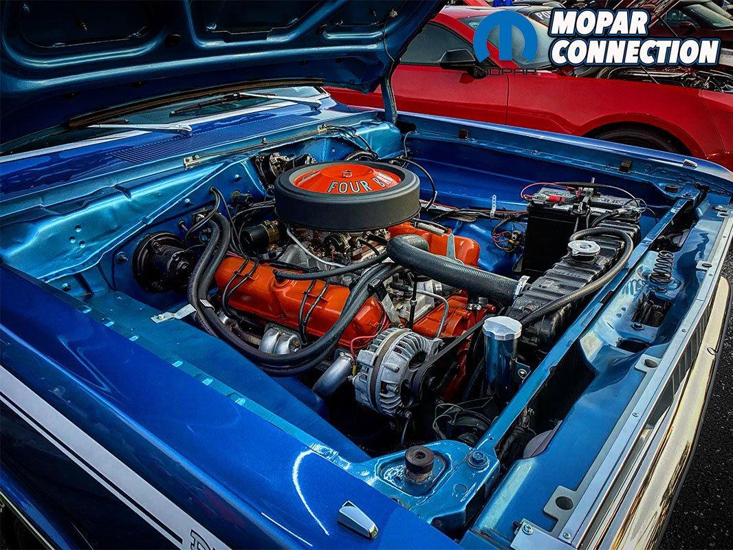 Under the hood, the original Slant 6 is long gone and replaced with a 408 stroker engine built by Precision Engine Rebuilders in Wentzville, MO. The stroker is based off a 360 small block that was bored .30 over. It features a COMP Cams solid flat tappet camshaft and OEM cylinder heads. On top sits an aluminum Edelbrock Performer intake and Edelbrock 600 CFM carburetor. Backing the stroker is a 727 Torqueflite automatic transmission upgraded with B&M TorkMaster 2000 torque converter and out back sits an 8 ¾ rear end with an Eaton 3.55 geared center section.