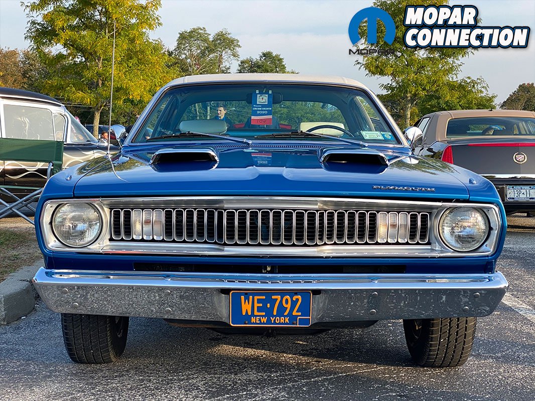 One week later, Marcelo’s new Duster was home and the fun began. The Duster was driven on his wedding day and then over the winter, he started working on it and making some changes. He tells us, “It started off life as a Slant 6 car so I don’t feel bad customizing it to my liking.” It rolled off the assembly line painted B5 Blue with a blue vinyl split bench seat interior and a full white vinyl top. The options included the A01 Light Group, A21 Deluxe Trim Group, A88 Interior Décor Group, fender mounted turn signals and air conditioning.