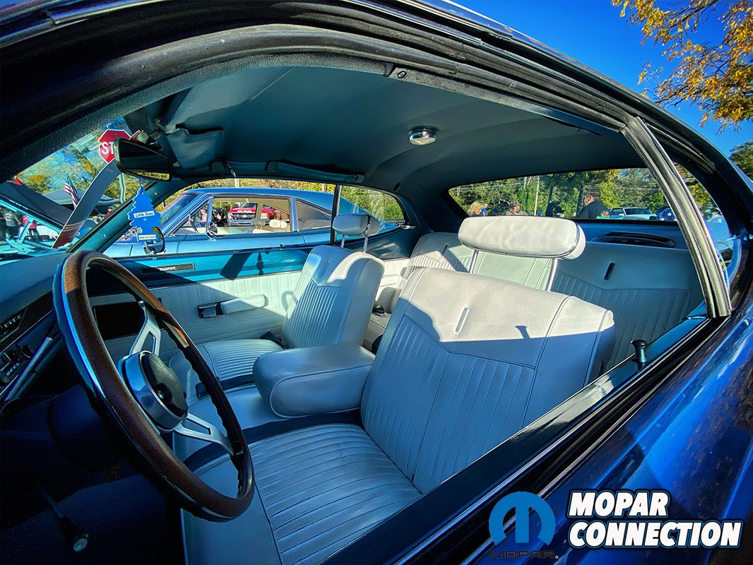 On the exterior, he added a pair of hood scoops and tail panel stripes and the bumper guards were removed. He also decided to replace the stock grille with a brand new reproduction Sharkstooth grille from OER Parts. In 2018 before he purchased it, it was resprayed a fresh coat of B5 Blue by the previous owner, Chris at Chris’ Automotive in Carmel, New York. On the inside, the original blue interior has been changed to white. Overall, it remains the same as Marcelo purchased it except he changed out the aftermarket steering wheel with an OER Parts reproduction Rim Blow steering wheel along with adding a RetroSound head unit with custom kick panel speakers.