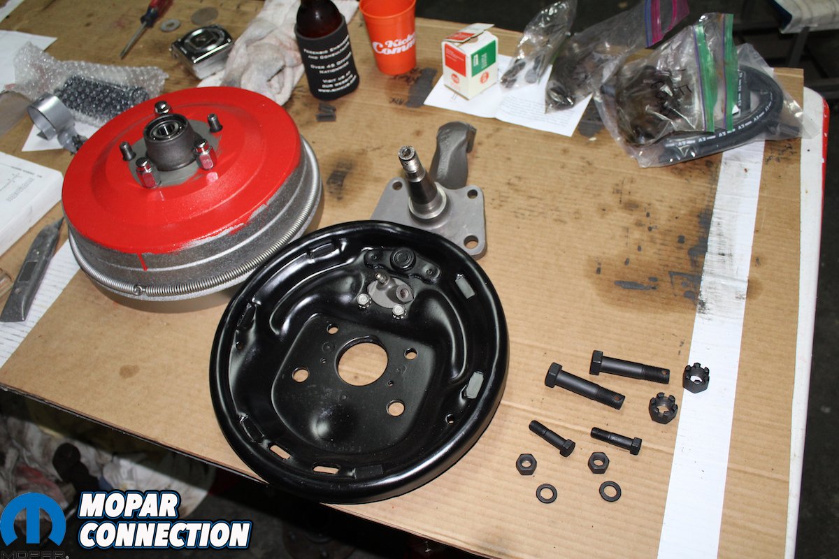 As is our standard procedure, we disassembled everything and inspected all of the parts to see if they could be restored or if they had to be replaced. That includes the upper and lower control arms, brakes, drums, backing plates, strut rods, idler arm, power steering box, ball joints, spindles, and wheel cylinders. Not only do we need them to function but they also need to be refinished to original appearance.