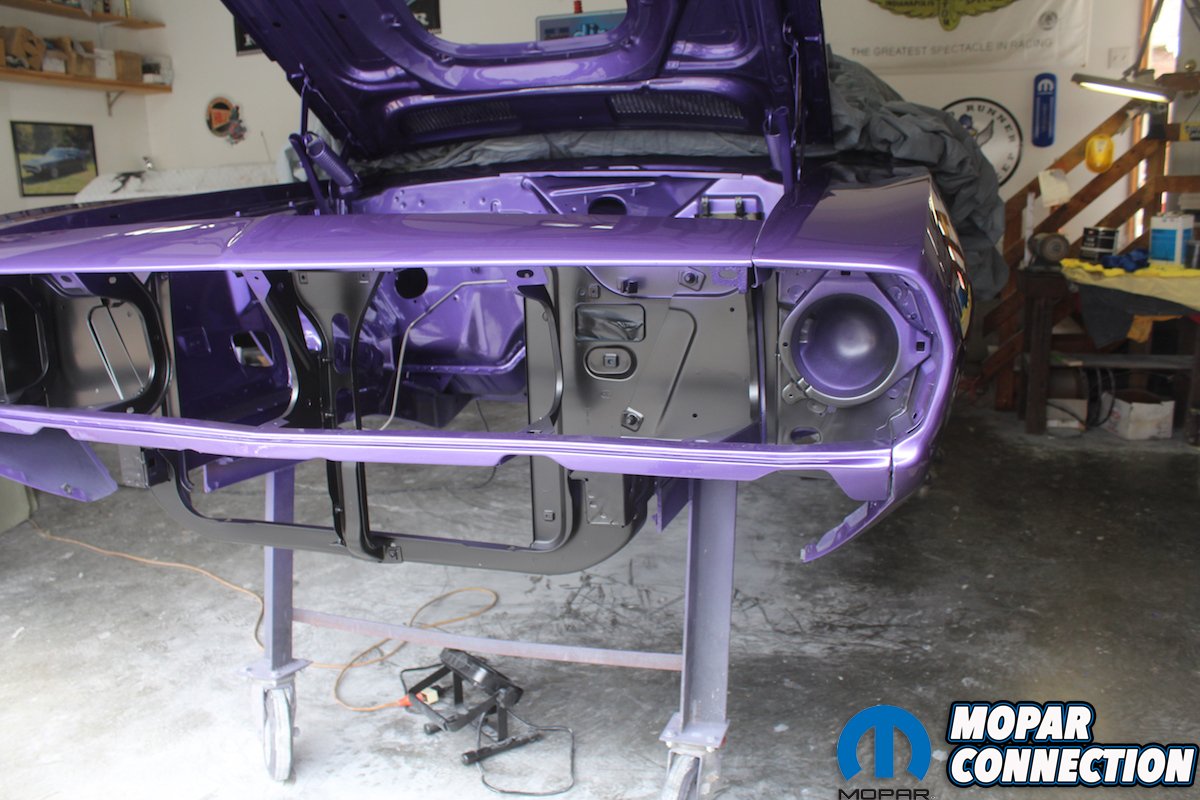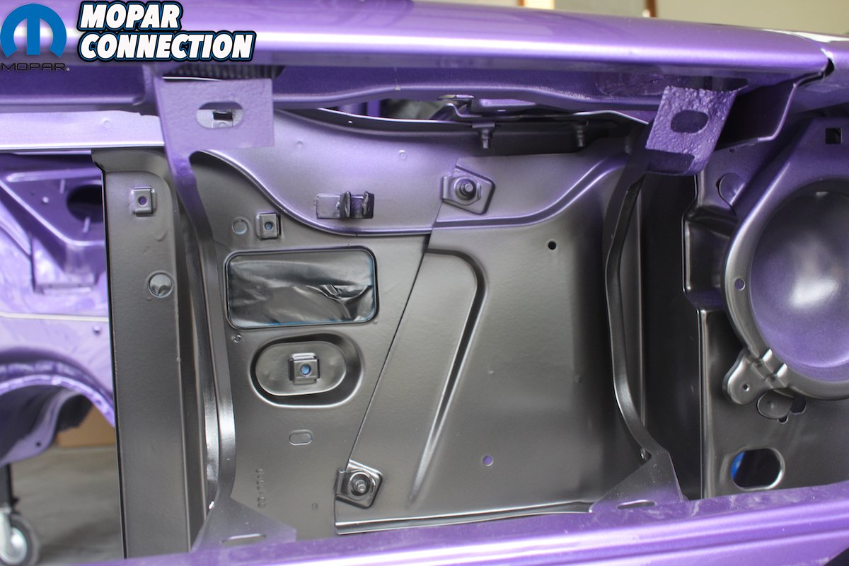 Now that everything on the Comeback ‘Cuda that needs painting or spraying is done, we can begin to assemble the car. In our next edition we will start under the dash area with insulation, pedals, emergency brake and heater box restoration.