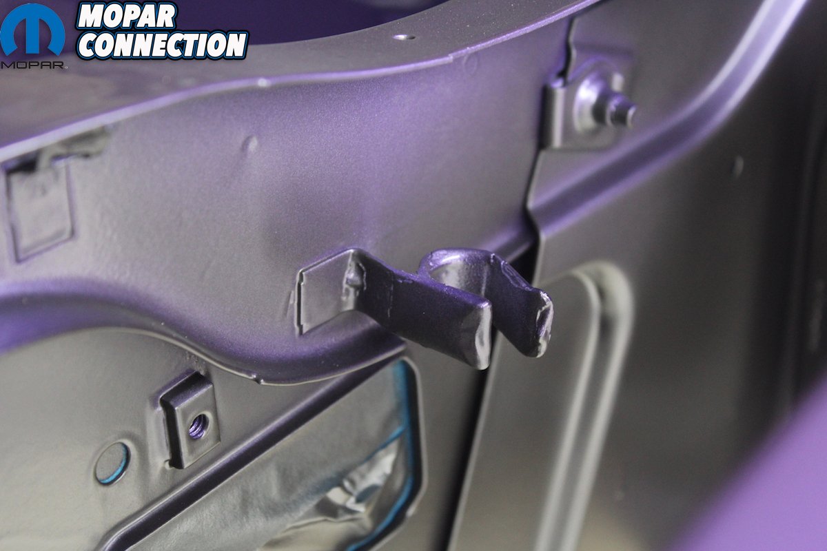 The grille blackout has always been a topic for discussion and disagreement in the hobby. What angle was it shot? Where and when on the assembly line was it shot? What areas got paint and overspray? What sheen is the black? What color cars received the blackout? What color cars didn’t receive the blackout? And on and on. The best way to know what your car had is to look. But if your car has been repainted, how do you know what it had? Since we were starting from scratch on the Comeback ‘Cuda, we used Chet’s original AAR ‘Cuda as an example. Plus, if you adopt the factory line worker’s attitude and the basic reason for doing it in the first place, you can re-produce it as correctly as possible.