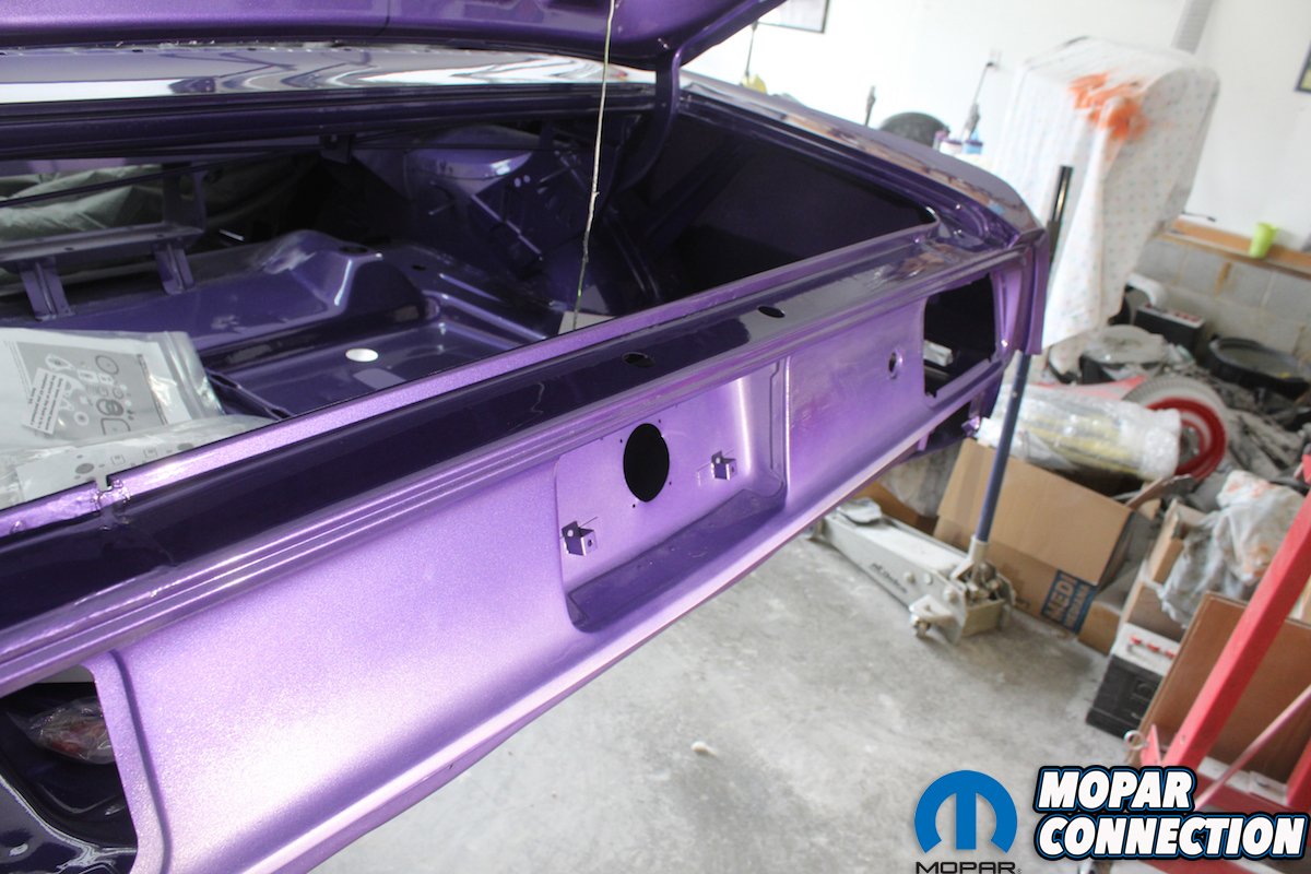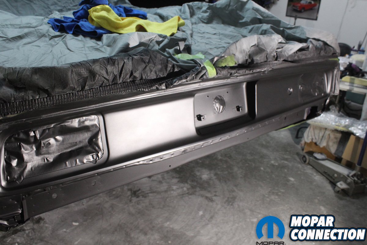 The ‘Cuda tail panel was blacked out with Organisol from the factory. Since the original Organisol formula is no longer available what do you use to re-create the look as close to original as possible? Mopar Connection has already documented our formula for using available products to create Organisol in previous articles, but I will list it again. Since the DDL 9355 lacquer is almost impossible to find we have come up with a formula using the currently available DCC 9355 single-stage urethane.