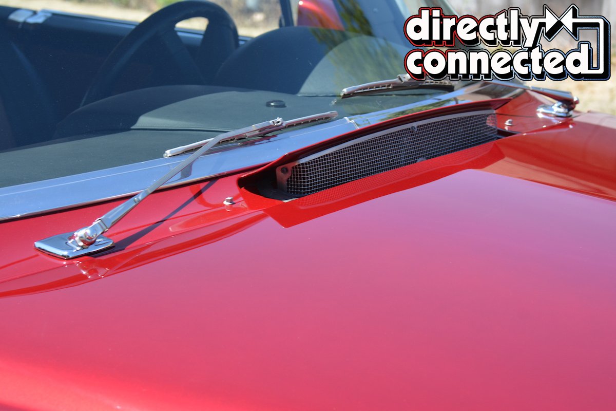 To keep things cool inside the Chrysler during those hot summer cruising days, Glen used the 2006 heater/AC unit but the coolest feature (in our opinion) is the function popup cowl vent on the ’56 Chrysler to pull outside in for ventilation. Here, Glen fabricated an air plenum under the cowl vent, ducted it to a fabricated port on the new AC box, and then equipped the cowl vent with an electronic servo that operated in harmony with the AC box that switched the vents for outside air. It’s quite neat to see the cowl went slowly rise when the outside air control is chosen. Even though the AC works fantastically, the 2-door hardtop inspires windows-down cruising for all but the hottest of days.