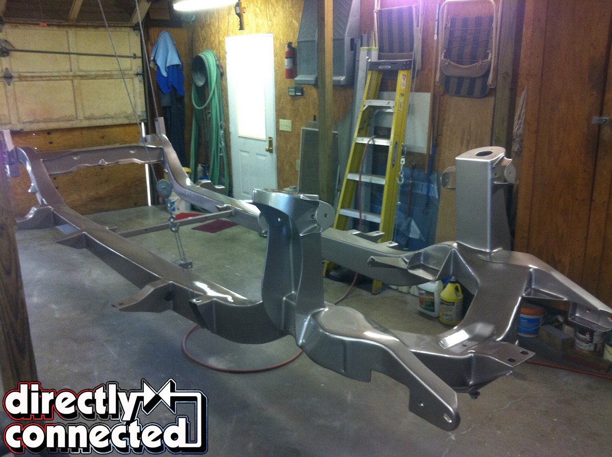 Since the Chrysler’s original frame was already a well built and fully boxed, it was a great platform and worked exceptionally well to mount the SRT8 subassemblies. With the correct locations for wheelbase, ride height, and most critically, the correct factory geometry, the project was progressing nicely for Glen.