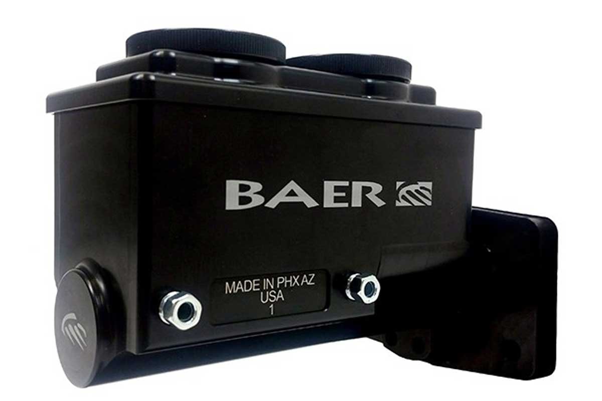 When swapping from a drum/drum (front/rear) to a factory disc/drum or an aftermarket disc/drum or disc/disc setup, the vehicle requires an upgraded master cylinder. The new master cylinder must provide the additional volume of brake fluid to the larger and often multiple caliper piston bores. The 6061 T6 billet aluminum Remaster master cylinders come with dual reservoirs. Each reservoir capacity is 7oz, but Baer recommends filling the reservoirs to 5.25oz or 75% of the total capacity.