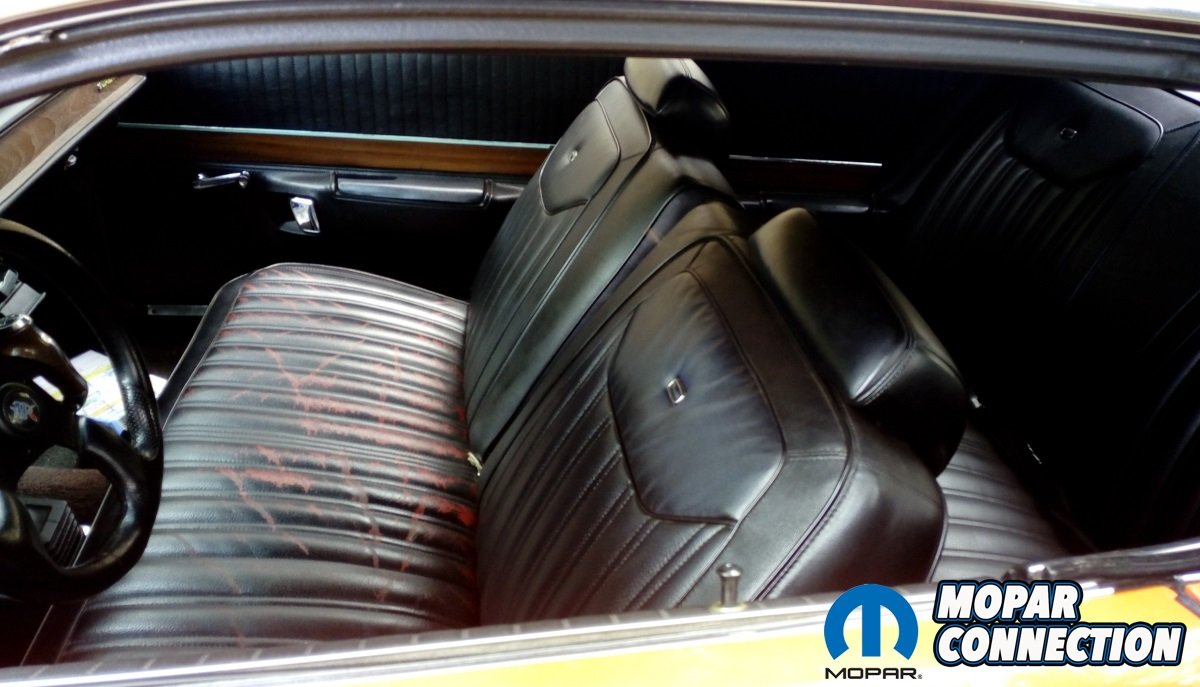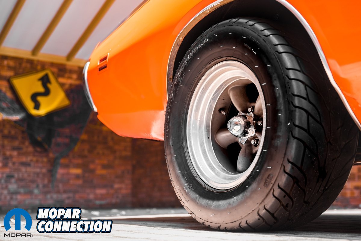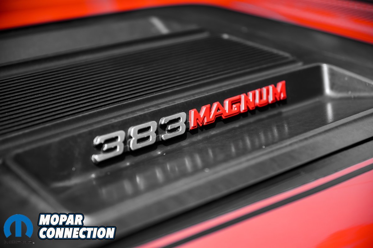 After the fire, the car was given an overhaul to repair all of the fire damage. In 2010, the original 383 engine was taken out and rebuilt. It was fitted with an Edelbrock four barrel carburetor and intake manifold along with a Comp Cams camshaft for a nice lope. The exhaust has been upgraded as well with custom headers from Tube Technologies and a full 2.5″ Flowmaster exhaust system. It still also retains its original A833 4-speed transmission and 8 3/4 rear end that were both rebuilt as well. It rides on 15″ Torque Thrust wheels wrapped in BF Goodrich Radial T/A tires (225/60 front & 295/60 rear).