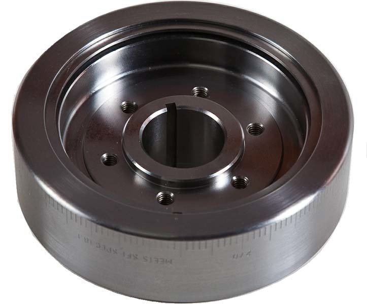 All feature a steel construction that’s SFI 18.1 approved. That SFI approval is a safety measure that ensures the damper isn’t going to have a high-speed come apart at the most inopportune time. Any vehicle that’s going to run the quarter-mile in less than 10.99 seconds at an NHRA-sanctioned event has to have one. Anyway, it’s better to be safe than sorry on the snout of your stroker.