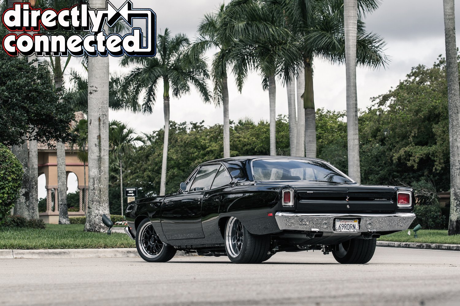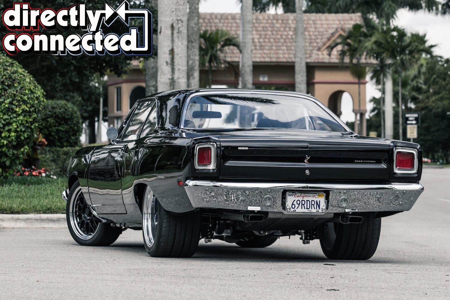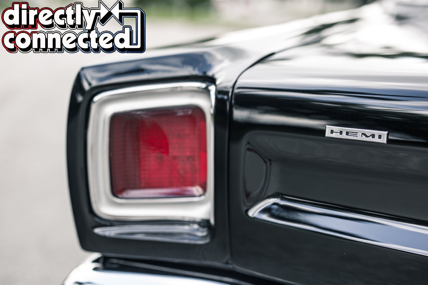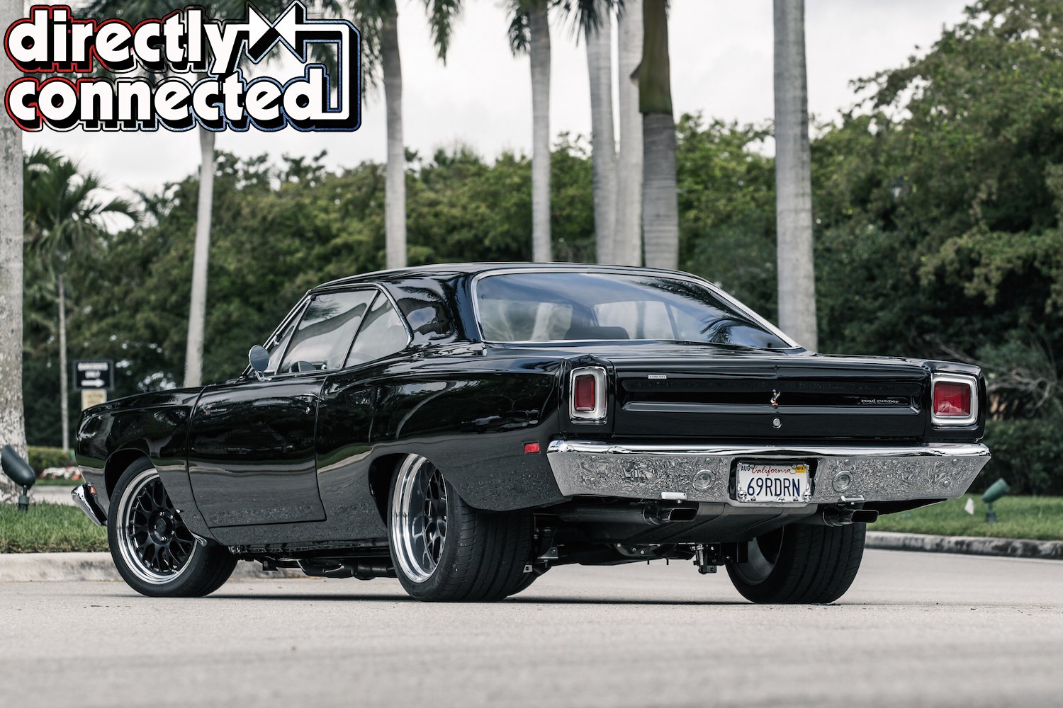 Prior to that, every single square inch of sheet metal was covered in Sherwin-Williams “Back in Black” two-stage urethane: three coats of color, three coats of clear, then a full color sand, then three more coats of clear, another color sand, and finally a complete buff job. The result is a mirror surface. Once finished, Bair Customs installed a custom chrome-plated grille and a quartet of H4 skull conversion headlights. side marker lights, and a pair of new LED taillights. Factory original HEMI badges, correct Road Runner emblems and decals, and Road Runner script emblems.