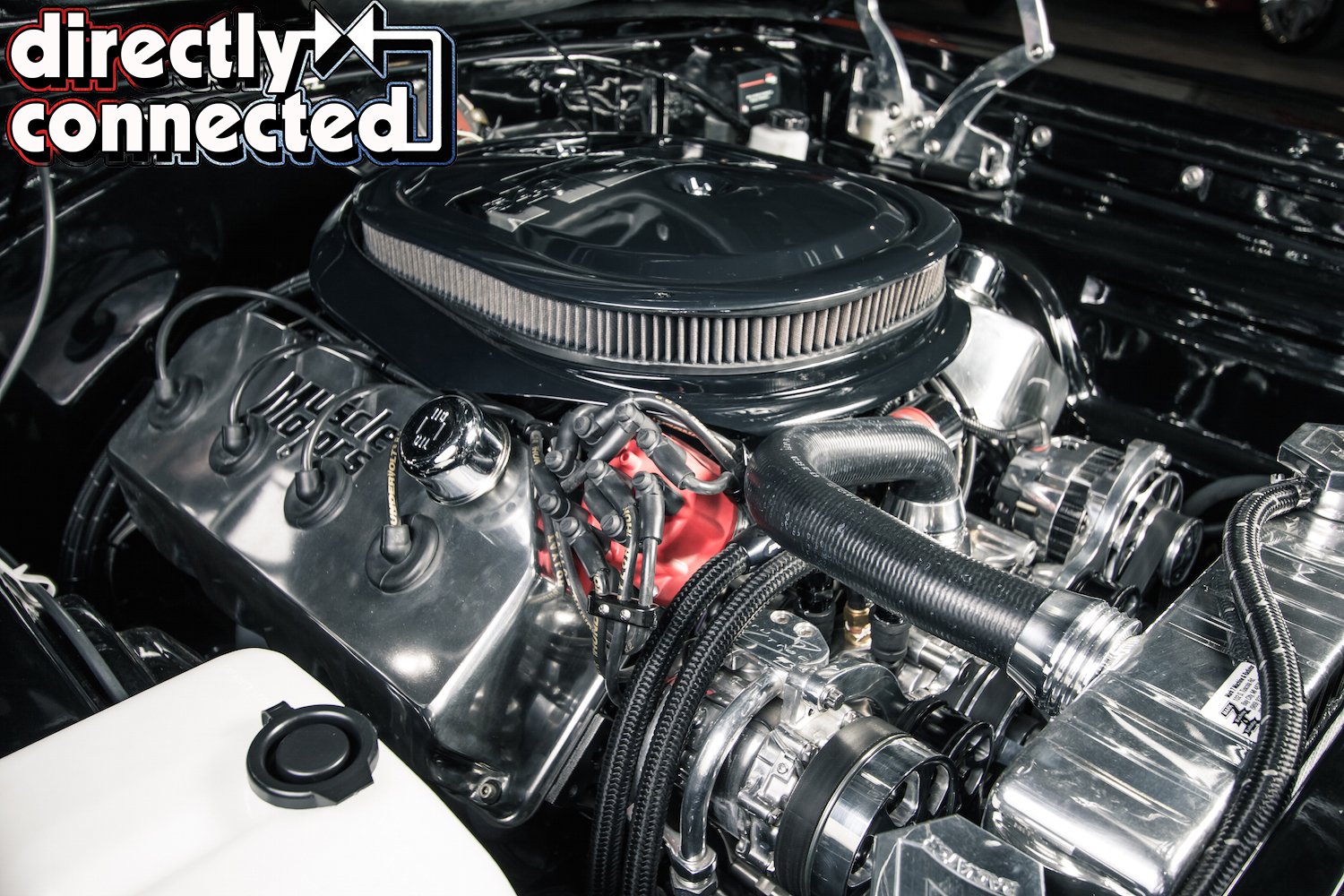 The big spotlight shines when the hood is lifted. Muscle Motors assembled a 540 cubic inch Hemi using an all aluminum HP Performance block capped with Indy heads, and fed by a FAST 2.0 fuel injection system with a custom Nitrous Express nitrous system. All of this adds up to 900-plus horsepower and over 800 ft. lbs. of torque. “An MSD 6AL box, Blaster coil, and billet distributor light the fires,” Bair describes. Ceramic-coated long-tube headers feed into a custom-fabricated 3-inch TTI exhaust system (with X-pipe) into a pair of Flowmasters and eventually to the factory-correct tips just under the rear bumper. There’s also a pair of Doug’s exhaust cut outs operated via an electric switch just for fun.