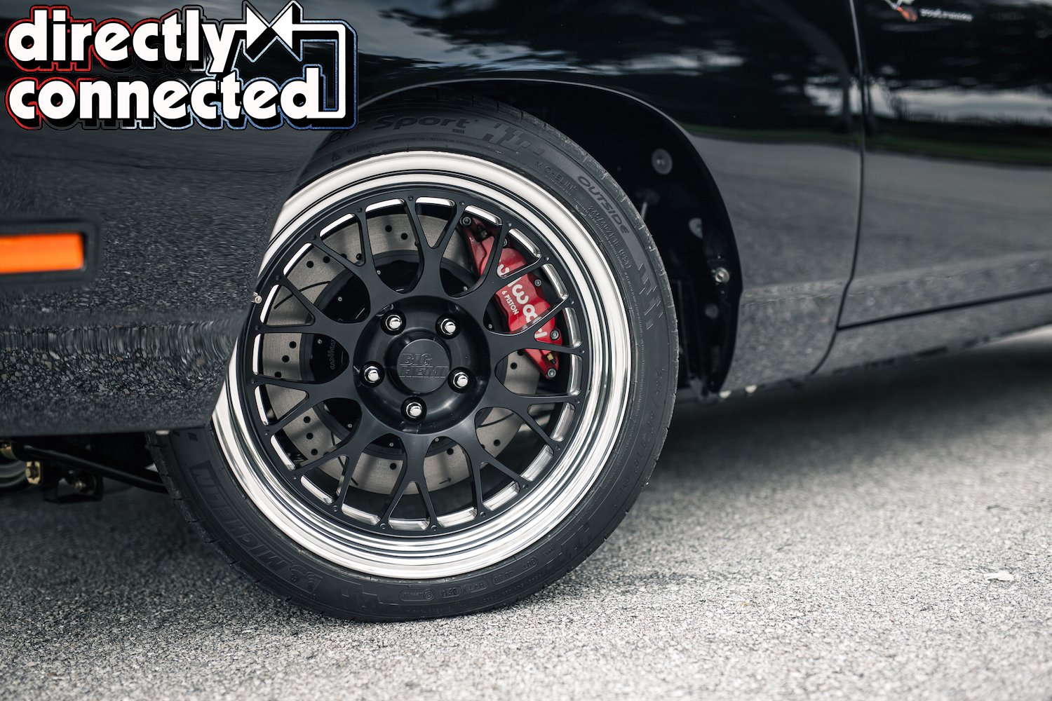 Resting on all-new suspension, the front k-member was replaced with a full coil-over Alter-K-tion front suspension conversion from Reilly Motorsports including custom A-arms and thick front sway bar. In back, a Reilly Street Lynx multi-link setup (with trailing arms and adjustable coil-overs) replaces the stock leaf springs. Giant Wilwood brake kits sit at all four corners capped with massive six-piston calipers “grabbing each of the cross-drilled and slotted rotors” controlled by a Hydro-Boost power assist and a billet master cylinder. There’s no mistaking the giant Fiske wheels (also given a blackout treatment) measure 18×8 in front and 19×12 in back wrapped in 345-30-R19 Michelin Pilot Sport rubber.