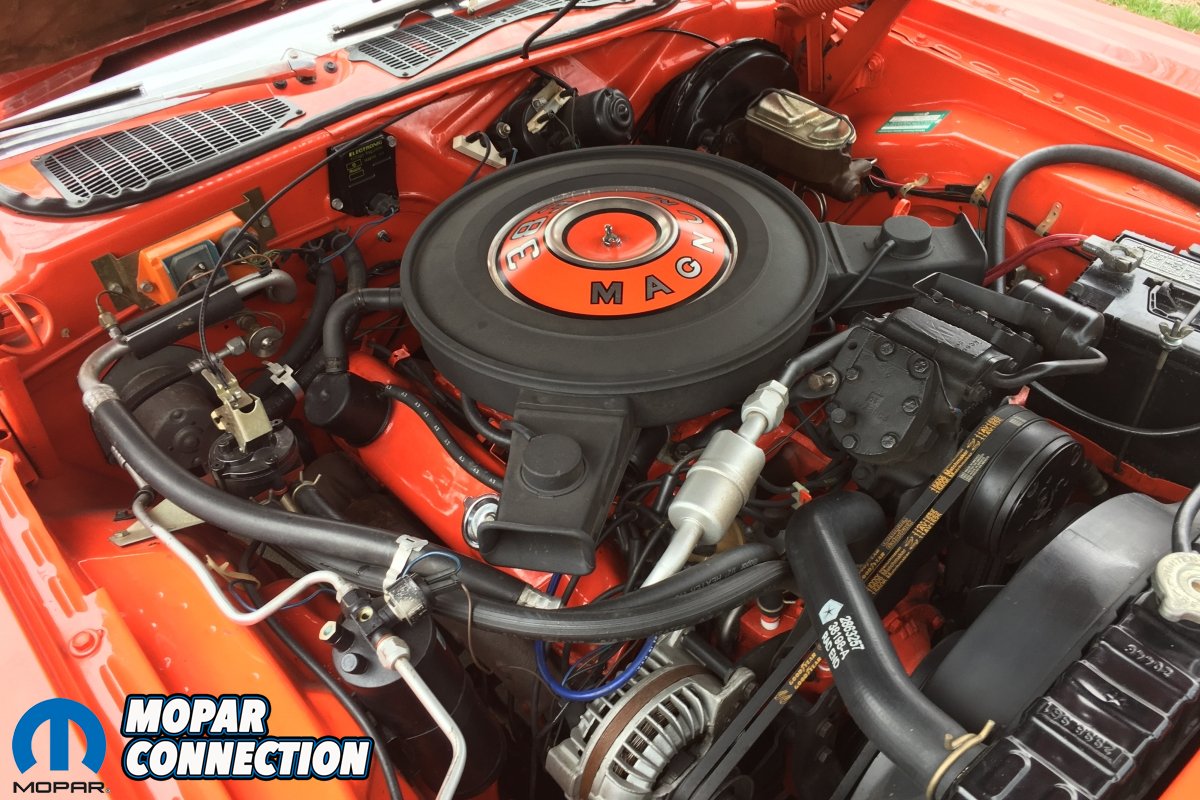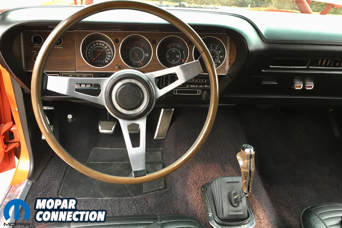 When Bobby picked up the car at Dodge City, a now well-known photo was taken of him and Sheriff Joe with the Challenger in-front of the dealership. Bobby’s new Challenger came equipped from the factory with the standard 383 Magnum engine backed by an A833 Pistol Grip 4-speed transmissions. The car was loaded with options including the light group, black leather bucket seats, rear window louvers, front power disc brakes, seat belt group, 3.91 geared Sure-Grip rear end, air conditioning, tinted glass, pedal dress up, hood pins, locking gas cap, undercoating, hood pad, rear spoiler, bumper guards, power windows, AM/8 track, rear seat speakers, power steering, Rim Blow steering wheel, V21 hood black out, black R/T longitudinal stripes and 14″ Rallye wheels.