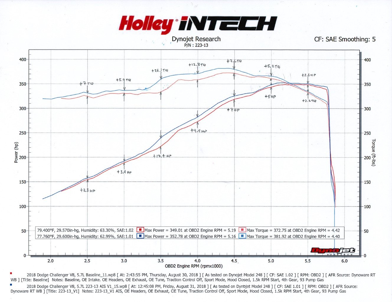 Holley’s new iNTECH CAIs for Hemi engines fit the bill with both ease of installation and a dyno-tested pedigree to boot. 2011-2020 Chargers/Challengers and 2011-2019 Chrysler 300s equipped with the 5.7 Hemi can pick up 17 horsepower and 26 lbs-ft of torque (P/N 223-13). Big brothers that feature a 6.4 Hemi powerplant have been proven to pick up 16 horsepower and 17 lbs-ft of torque (P/N 223-12). The use of factory mounting locations make them bolt-ons in the truest sense of the phrase.
