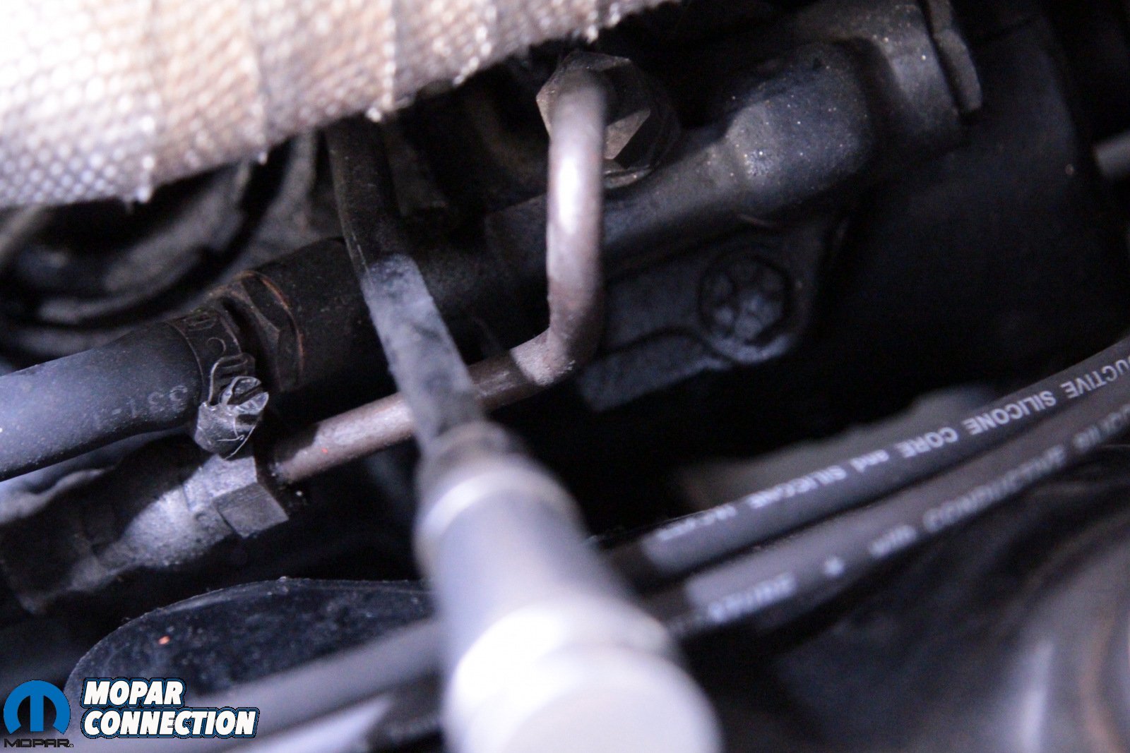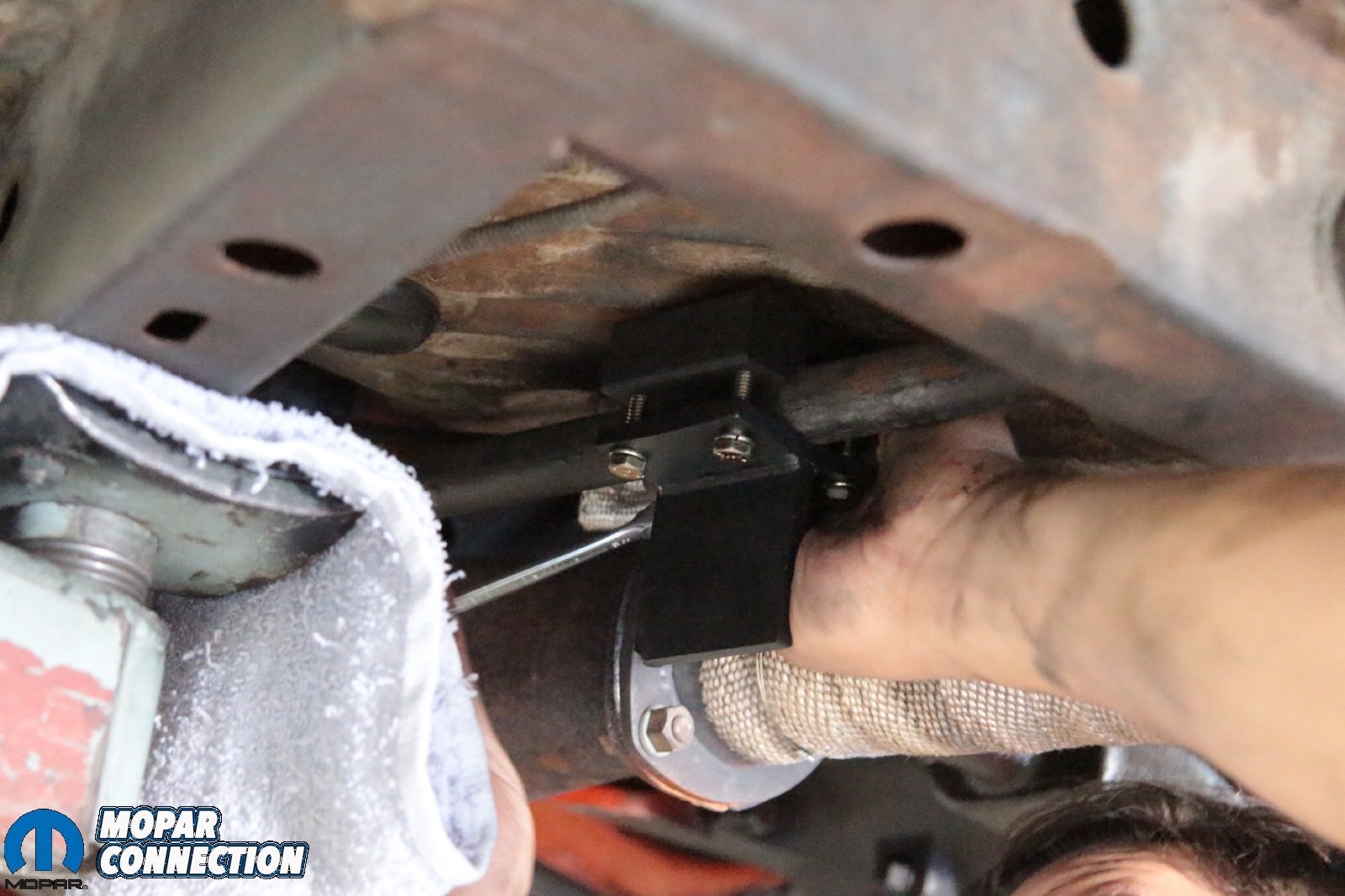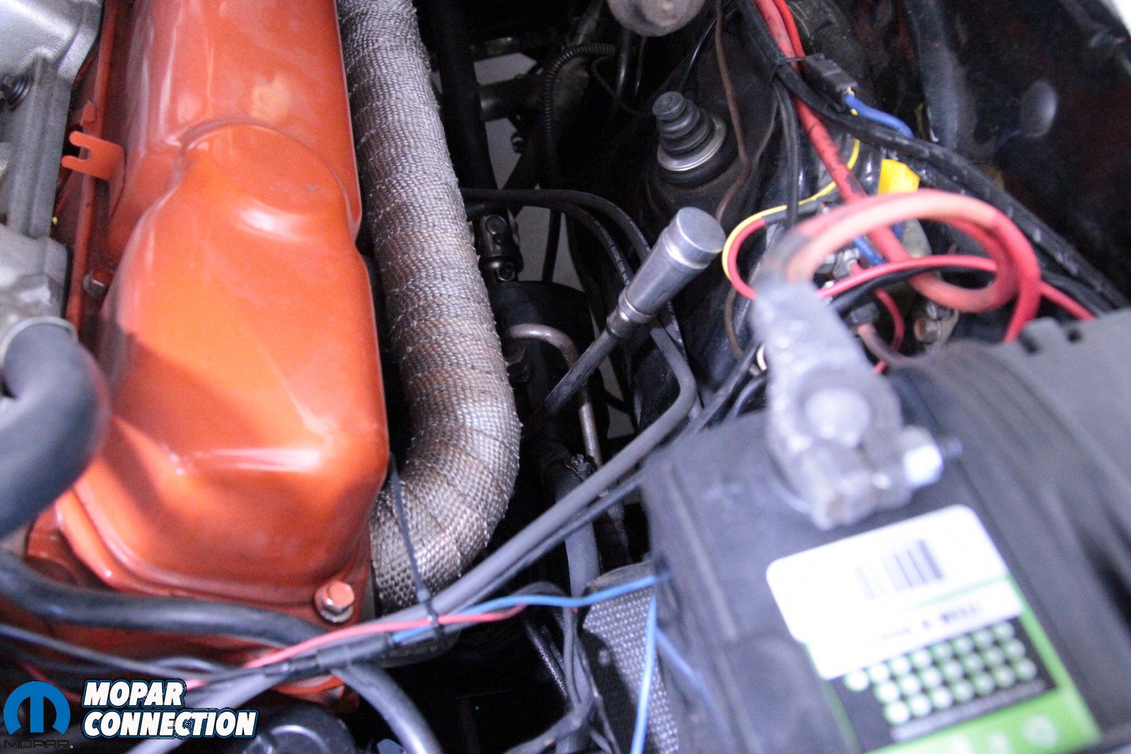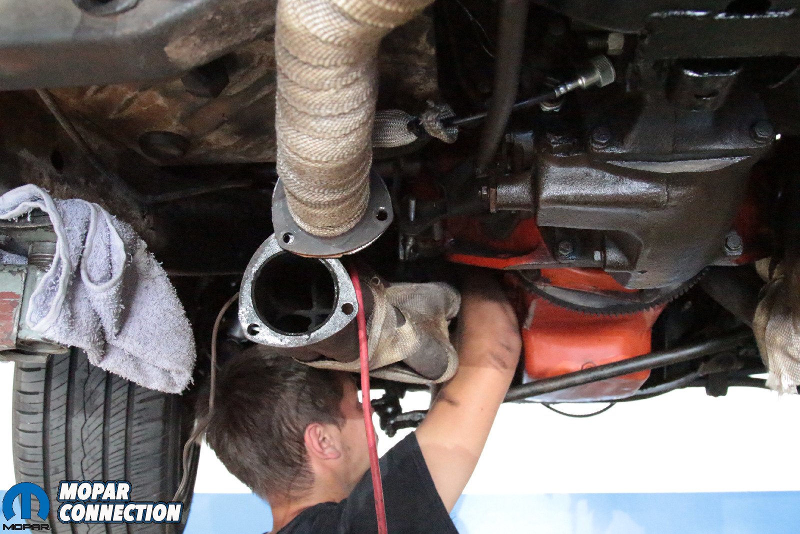 Above: It’s a tight fit in there, and that means that some components need to be removed – specifically the header and the torsion bar. However, not because of the Borgeson box – because Mopar. With those components out of the way, the box is far easier to remove.