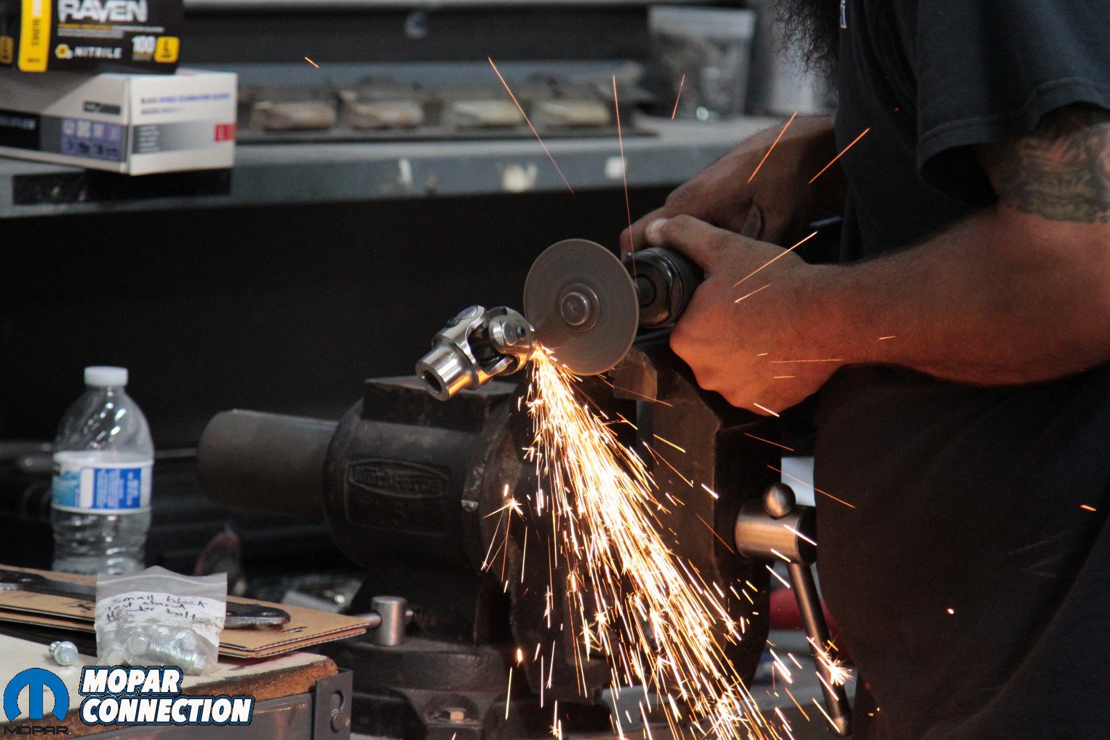 This connection between inner and outer housing is much firmer than the OE coupler, however, Grantmeyer assures us that owners won’t have any problems like they might have with a solid universal joint. The provided joint is made specifically for Mopar steering columns and mates to the Borgeson steering box, so there’s no guesswork. But, as you might guess, we also had a modified steering column with this ‘Cuda, so a little grinding and cutting was necessary to remove the universal joint that was welded to the steering shaft. For any original steering shaft, the Borgeson universal joint is a direct fit.