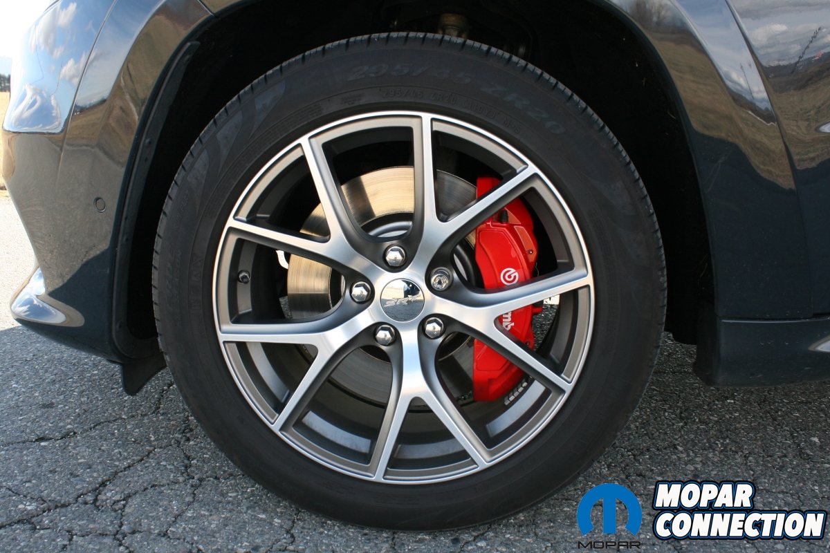 Our test vehicle was a previous model year featured in stunning “Rhino” paint with 20×10″ Lightweight Forged wheels. For 2019, available colors on the Grand Cherokee SRT include Bright White, Ivory Tri-Coat Pearl, Billet Metallic, Sting-Grey, Granite Crystal Metallic, Diamond Black Crystal Pearl, Slate Blue Pearl, Redline Pearl, Velvet Red Pearl and our favorite, Green Metallic which looks similar to the F8 Green found on Challengers and Chargers. Only two wheel choices are available, the standard 20×10-inch Satin Carbon Split 5-Spoke wheels or the optional 20×10-Inch Black Satin Aluminum wheels.
