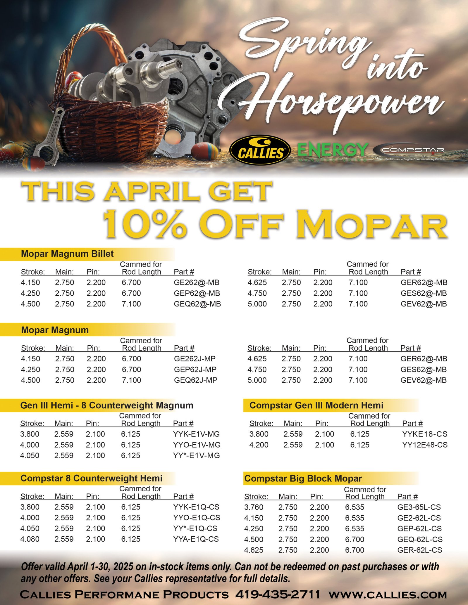 Take a long hard look at the fliers listed below and see if there isn’t something from Callies Performance that you’ve been needing to get that dream engine build up and off of the ground. You might just find something that’s worthy of that tax refund check after all.