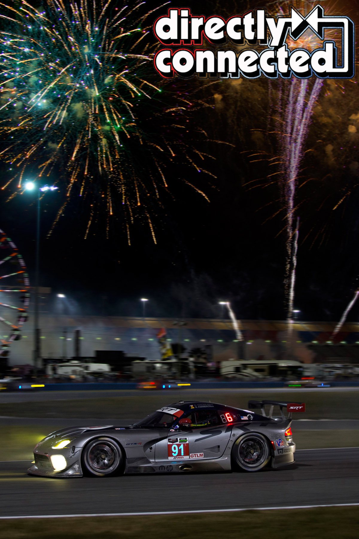 Above left: The No. 91 Viper SRT GTS-R on track during the Saturday night fireworks at the Rolex 24 At Daytona. Above right: Man and machine Kuno Wittmer and the Viper GTS-R.