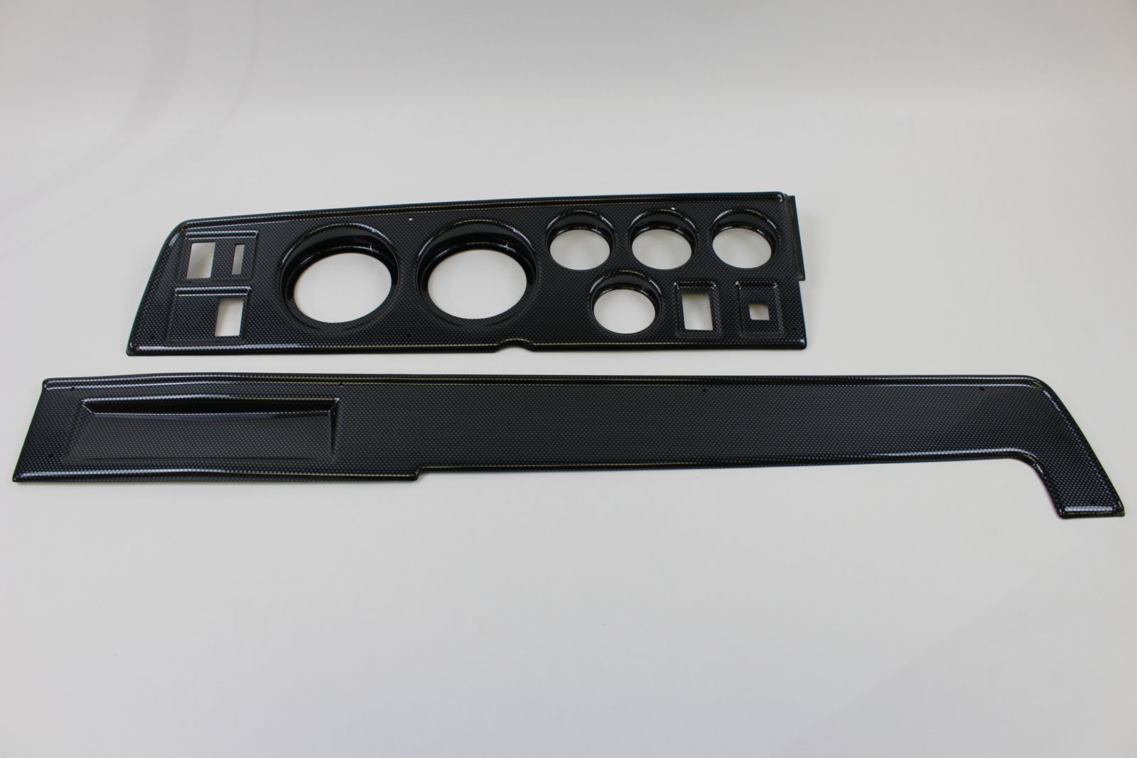 Classic Dash reproduces many popular muscle car and truck dash panels out of UV resistant ABS plastic. The dashes come in your choice of brushed aluminum, carbon fiber or matte black finish and have perfectly placed recesses for multiple gauges, light switches, turn signals and other necessary dash items.