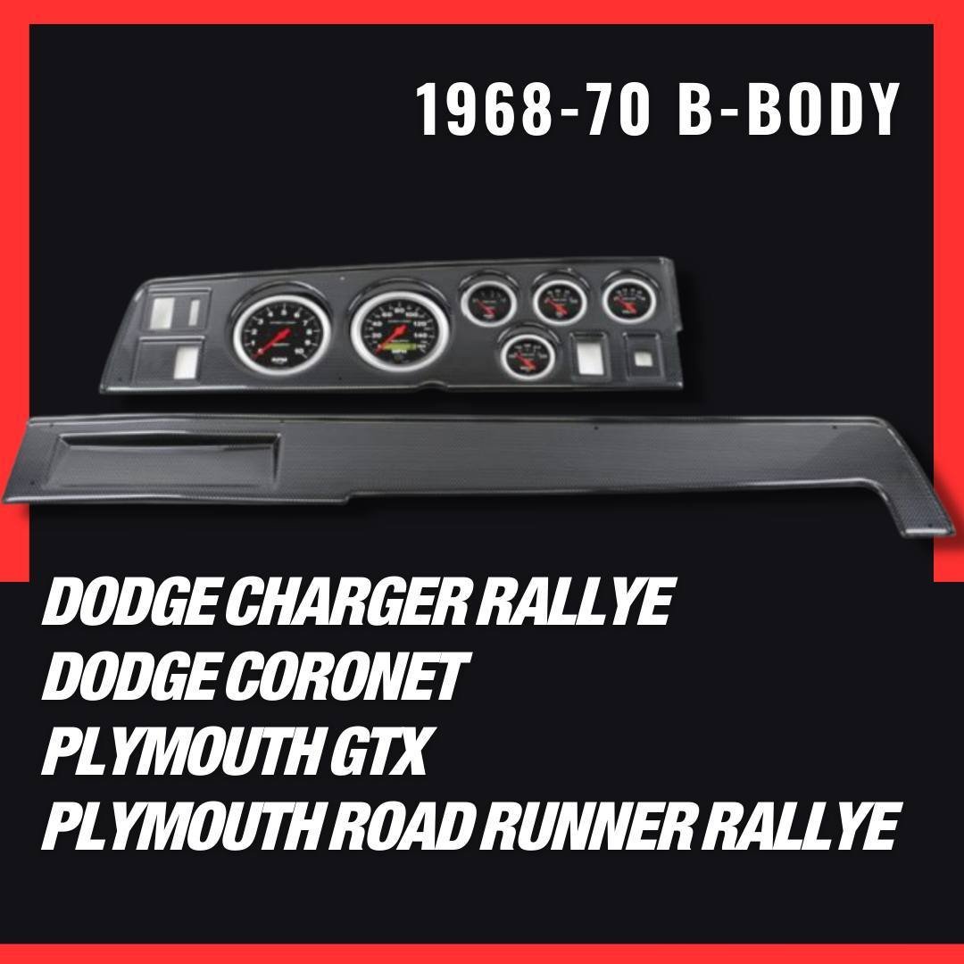 The panels accept modern aftermarket gauges like Autometer and Classic Instruments. The panels come in various finishes like carbon fiber, matte black and brushed aluminum. Classic dash has them available as just panels or as complete kits with wiring and gauges included.