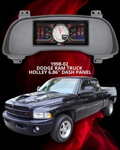 - PN# 707980021 – 1998–2002 Dodge Ram Holley 6.86″ Black Dash Panel – $204.95