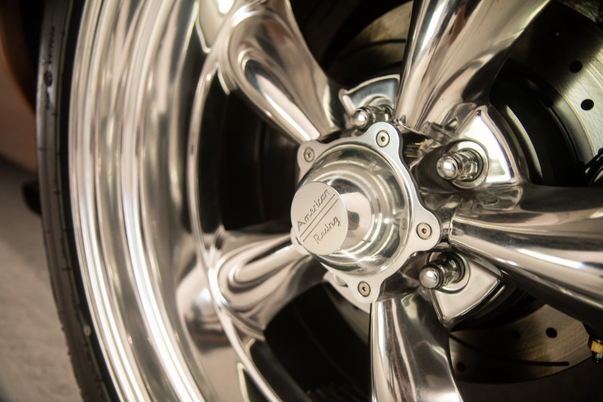 To help handle the horsepower, the crew installed a Moser 9″ rear end, Wilwood brakes (Six Piston Forged Calipers in the front and Four Piston in the rear) with drilled and slotted rotors and Magnum Force coil-over suspension. To keep the old school look and feel the client wanted, American Racing Vintage 515 wheels (18×10 Rear and 18×9 Front) were installed. A custom fabricated exhaust with Magnaflow mufflers lets that Hellcat Hemi roar.