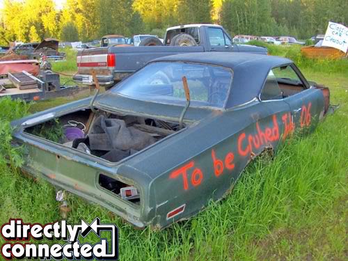 Unfortunately, Matt’s plans fell through to buy it; he just didn’t have the money nor the means to get the car. On May 28, 2007, the burnt orange Coronet fell victim to the car crusher. Paul simply needed room in his yard. It was badly smashed up and bent after it crashed into a lake in the ’80s. From what I was told, the driver unfortunately drowned in the car so crushing it was probably a good thing.