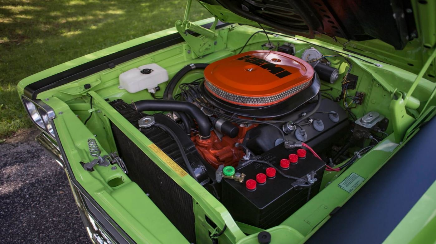 Third place was a 1969 Hemi GTX for a respectable $100,100. Even with a non-original color and a not-quite-concours restoration, this factory Hemi/4-speed car was still able to bring six figures. It was purportedly one of just 98 hardtop, 4-speed cars made in ’69. Take note of the reproduction red-line rolling stock, readily available from the guys and gals at Coker Tire.