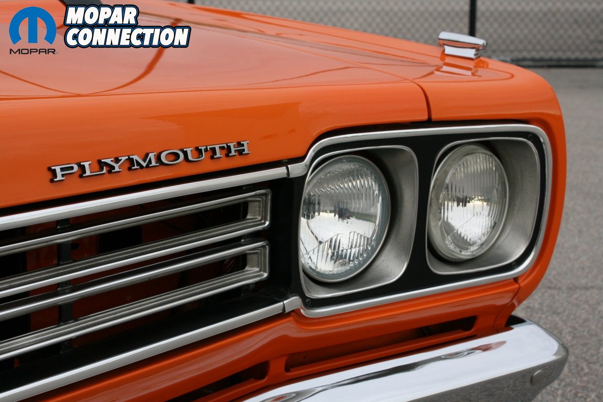 The 999 code Omaha Orange Road runners were produced at the St. Louis plant in a limited test run in early 1969. I worked at the Chrysler dealership in Stillwater, OK, and we went to Wichita, KS to exchange a group of used cars, and brought back one of the two special edition cars they had received in February 1969. I was graduating from college in May of 1969, and when we got the car back to the dealership, I told the owner of the dealership I wanted to buy it. He said I could have it, but it needed to be displayed in front of the dealership for 30 days first. Mine had the black vinyl top, but the GTX bucket seat and console interior. It was an awesome car and I enjoyed it immensely. Production lines at the time were notoriously sloppy, and after getting my car to the dealership, we noticed that the pencil lines had been laid out to shoot the black out hood stripes, but they had not been taped off and shot before it left the line.