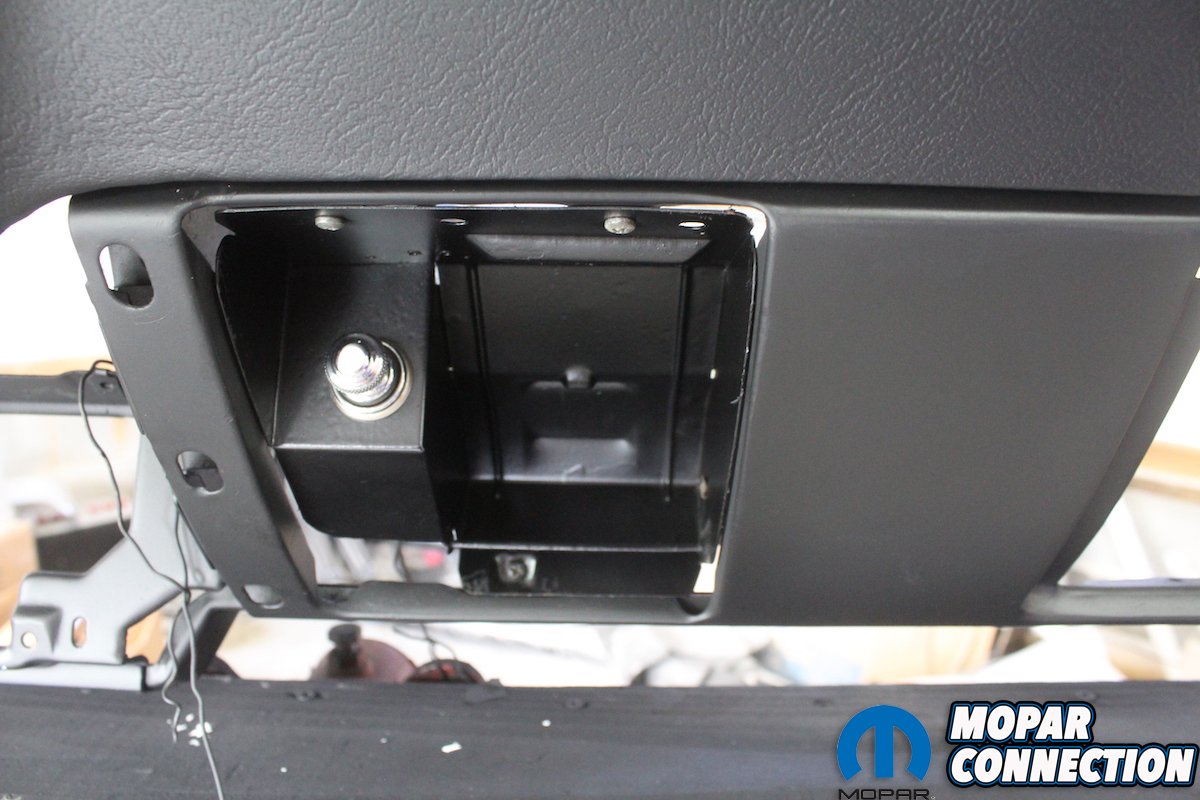 Above: The original glove box had been replaced before with a reproduction one, but it was looking a little tired. We decided to replace it with one provided to us by YearOne. Quality parts = quality results!