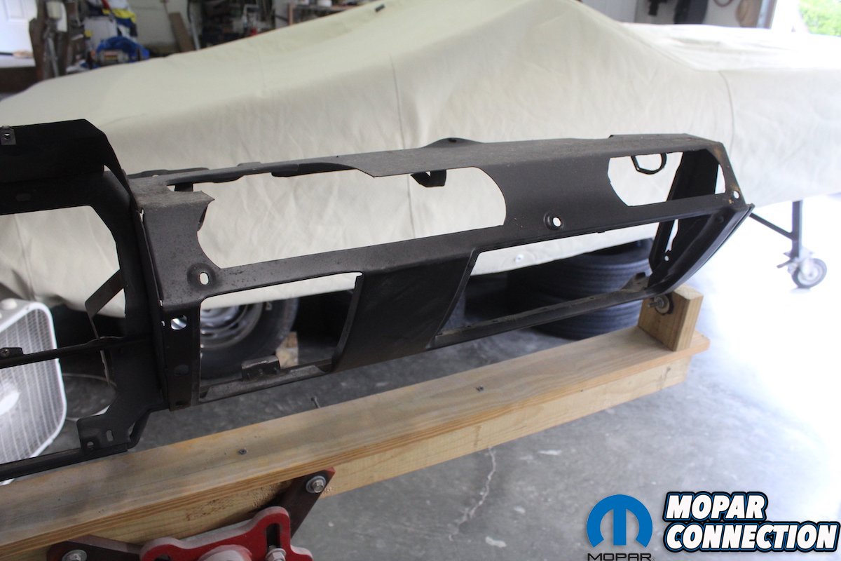 The “brain” of any car is the dash assembly. Dash frame, gauges, and the wiring harness make up one of, if not the most important part of a car. Yet, I see many times in restored cars this is where corners are cut. Non-restored gauges, old wiring harness, non-functional radio, dash frame, and even the VIN plate is reused without being restored. The restoration process of the Comeback ‘Cuda is so involved that we are going to divide it into three articles. This article, what we’ll call “Part 1” will cover the disassembly and restoration of the dash frame. Part 2 will cover the testing and restoration of the gauges, and Part 3 will detail the remaining switches and rebuild of the functional parts and final assembly.