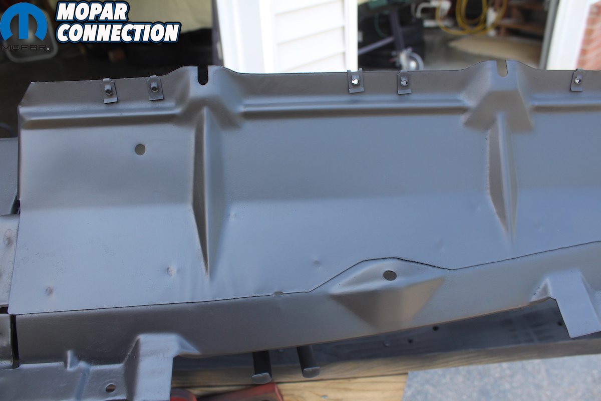 Above: After everything is removed check the dash frame for any rust or damage and document with pictures. Here is a shot of the left and right, front and back of the dash frame. All is perfect with no rust whatsoever. This is a perfect time to see what the original finish was. The color, and especially the texture, is important to document. The finish we have put on a 69 and 70 B-body dash frame is completely different from this 70 E-body. The B-bodies frame was more textured while the E-body was less textured.