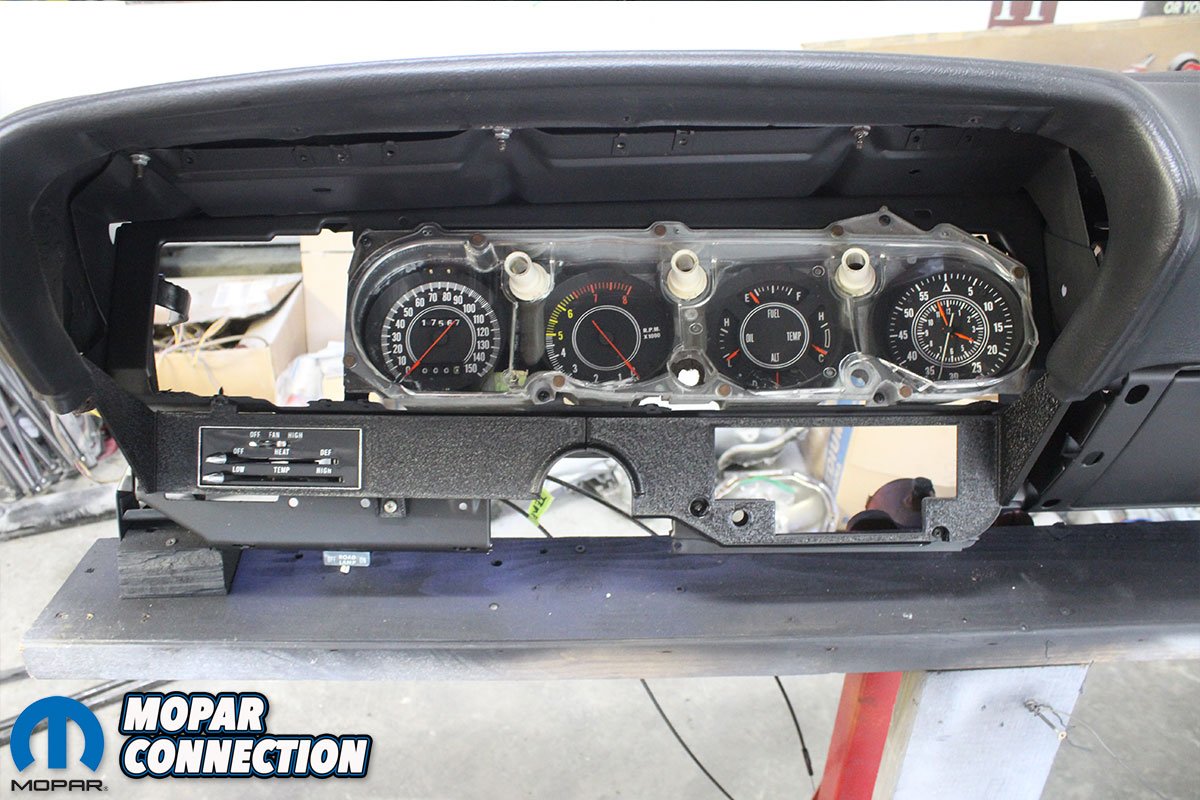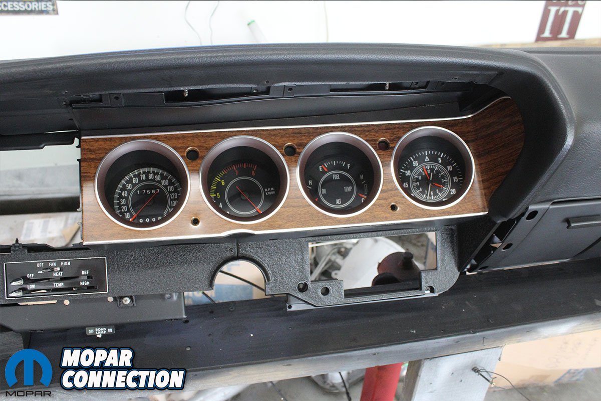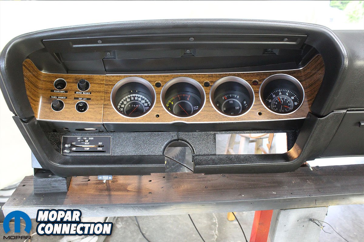 In Comeback ‘Cuda Brain Surgery “Part Two”, we went step-by-step through restoring and testing of the Rallye dash instrument cluster for the car. We even went as far as to show you how to build a gauge tester and check the recommended readings of each gauge. During this portion of the dash restoration, we restored the faces of the gauges, the clear plastic lens, and the wood grain finishes.