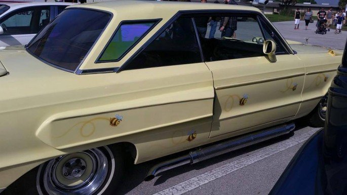 Side portals give the Plymouth’s already complicated quarter panels a failed starship appearance, while the opera windows in the C-pillars not only strike a late ’70s disco van feel, but likely weaken the overall integrity of the car. All across the poor B-body’s lines are grotesque airbrushed bumblebees that look a lot like something the owner’s mother doodled, and the huge polished lake pipes only assure us that the designer was a 7-year-old boy (pay no attention that a quartet of polished tips jut out below the rear bumper).
