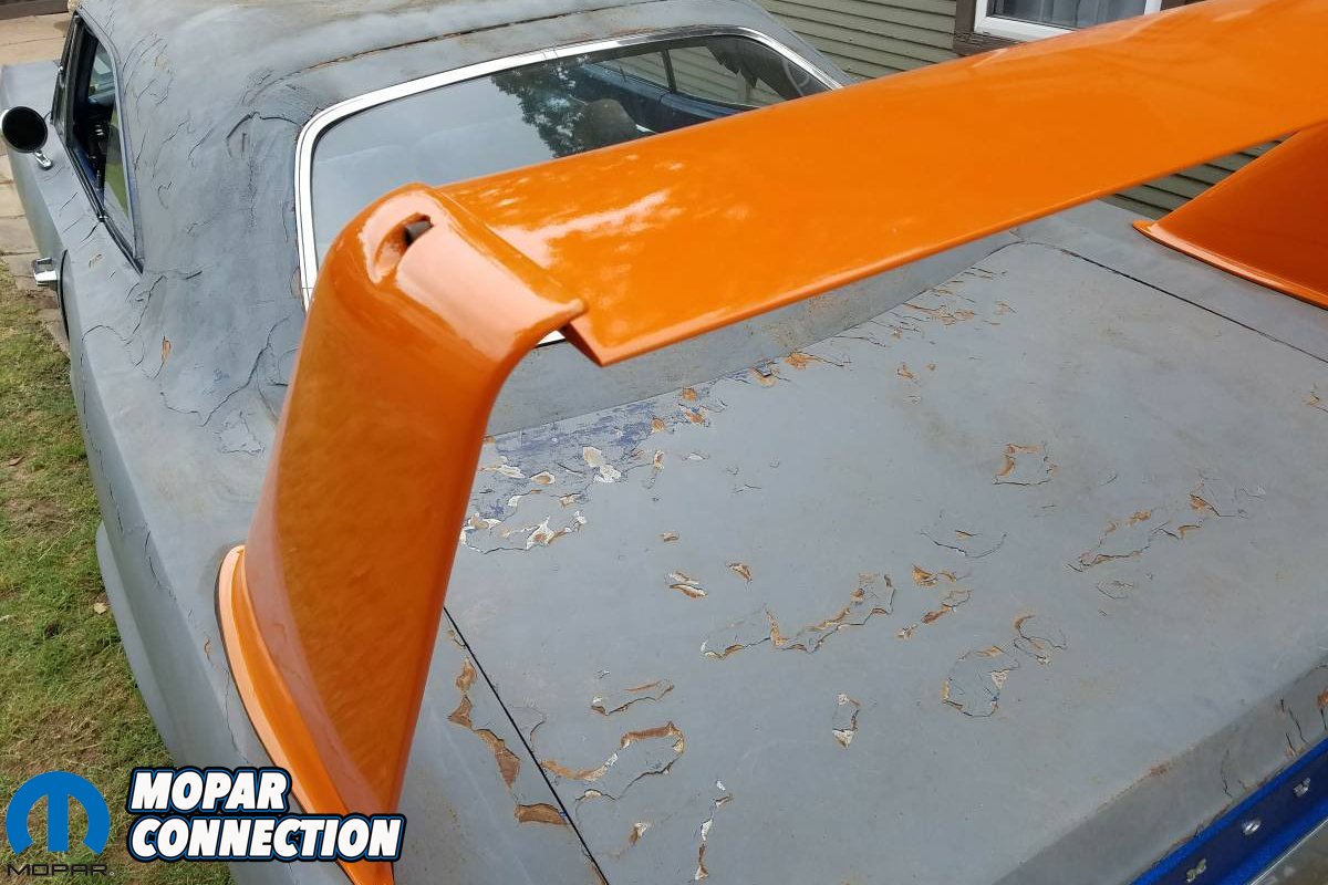 “The VIN reads as RM23UOA178679. I’ve done research on the VIN and it shows up in the NASCAR Superbird registry. The VIN can be found on the original A833 4-speed transmission. The trunk VIN number is hard to read. The rear window plug is original and so is the aluminum rear wing to the car. The front clip is off of a 69 Roadrunner. The car will need new quarter panels and trunk floor. There’s also rust in the driver side floorboard. The car has been sitting out in the weather for years. It does have a 1966 440 in it now and runs and drives. The rear end is the original Dana 60 believed to be the 4:10 ratio. Original bench seat is still in the car, along with rear seat. It does have a new gas tank, wiring harness, and brakes.